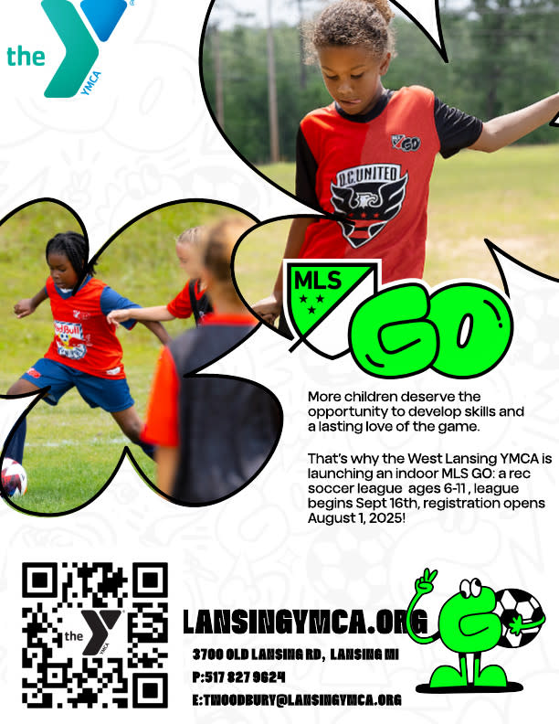 More children deserve the opportunity to develop skills and a lasting love of the game. That's why the West Lansing YMCA is launching an indoor MLS GO: a rec soccer league ages 6-11, league beings September 16, registration opens August 1, 2025.