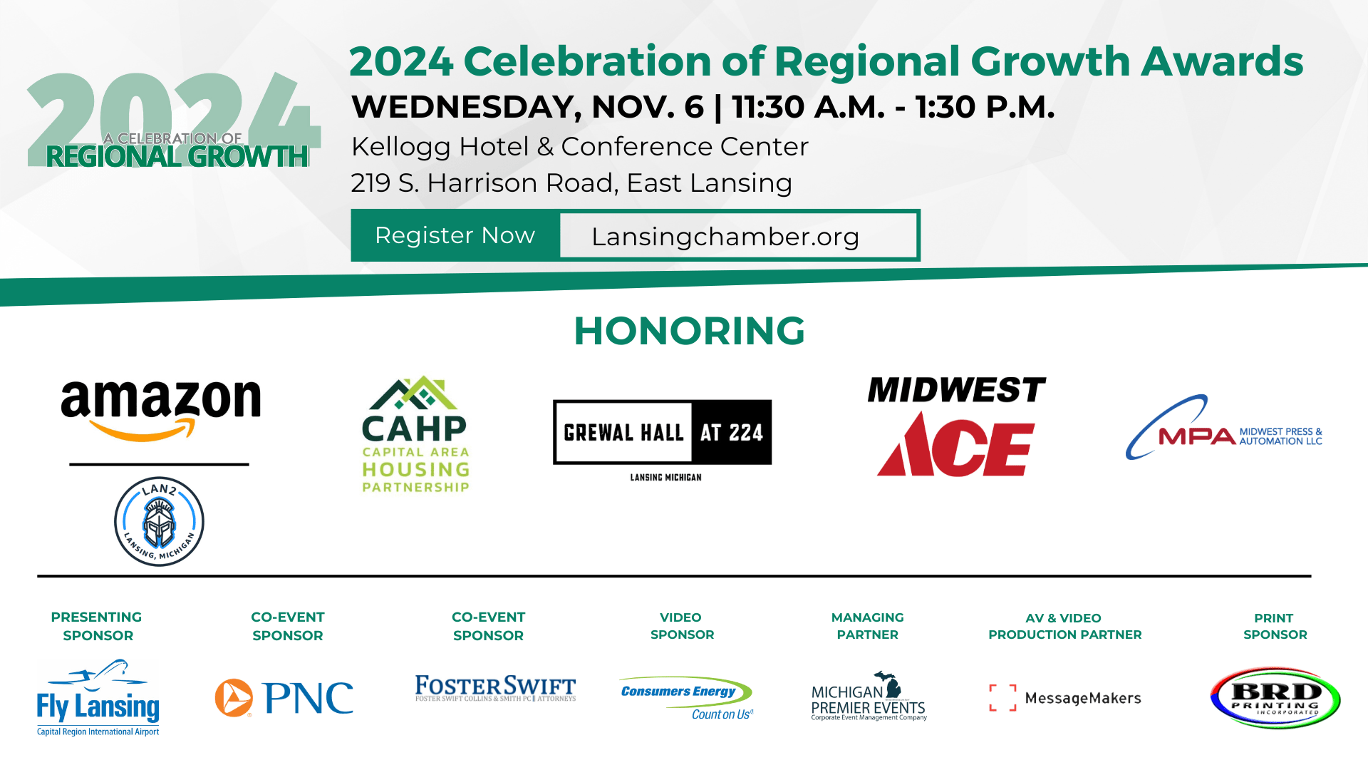 As part of the Lansing Economic Club speaker series, the Lansing Regional Chamber of Commerce will honor five organizations for their investments that are reshaping and transforming our region during the 19th annual Celebration of Regional Growth (CORG) Awards.