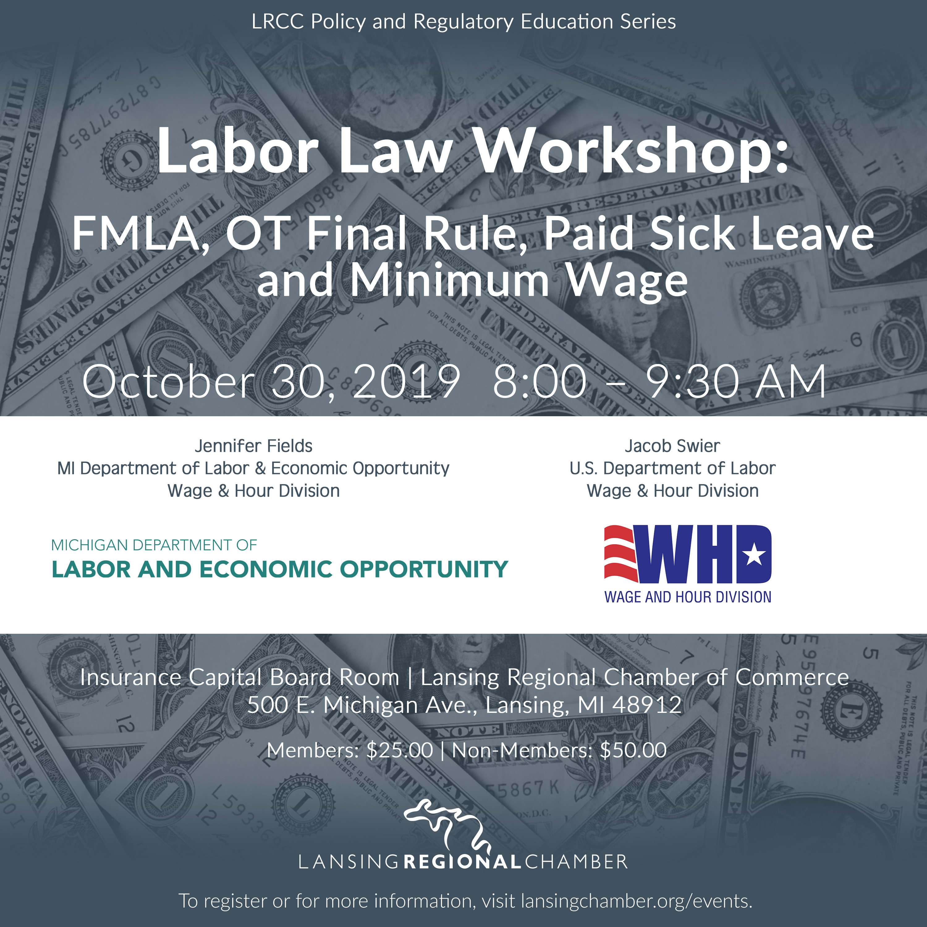As part of its Policy and Regulatory Education Series, the Lansing Regional Chamber of Commerce (LRCC) will host the Labor Law Workshop Oct. 30 from 8 to 9:30 a.m. in the LRCC: Insurance Capital Board Room. The informative event will feature regulatory experts who will discuss what you need to know about family and medical leave, overtime, paid sick leave and minimum wage.