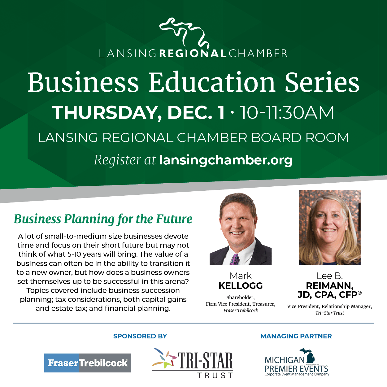 Topics covered include business succession planning; tax considerations, both capital gains and estate tax; and financial planning.
