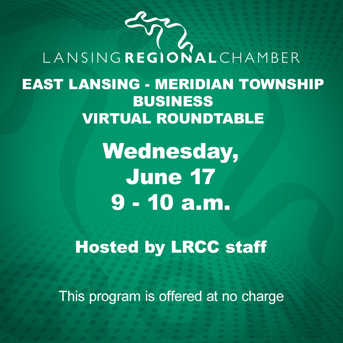 The Lansing Regional Chamber of Commerce (LRCC) East Lansing-Meridian Township Roundtable meets once a month. It consists of LRCC business members as well as public officials from every level of government (city, county, state and federal), including school districts. A variety of issues relevant to the business community and region are discussed during the roundtables. It's been the main focus of the LRCC to continue to build healthy relationships between business and elected officials. For the foreseeable future, the LRCC will take advantage of modern technology and use Zoom for these meetings, so local leaders stay connected during these challenging times.