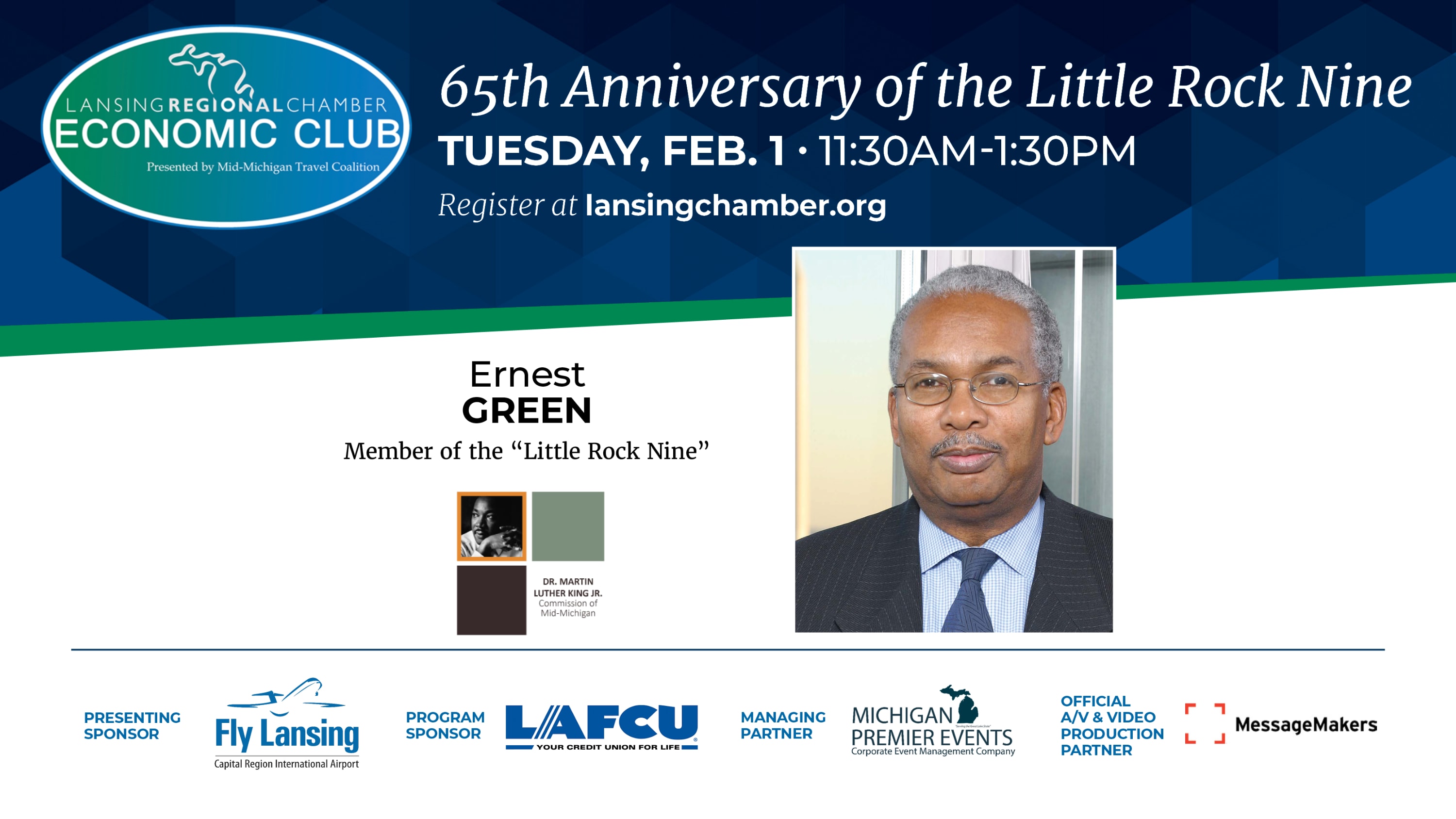 On Sept. 4, 1957, nine black students enrolled at the formerly all-white Central High School in Little Rock, Arkansas. Their enrollment in the school was made possible because of the landmark Supreme Court ruling Brown v. Board of Education declaring segregation in public schools unconstitutional The MLK Commission is highlighting the 65th anniversary of the Little Rock Nine, which includes Ernest Green. During the February Lansing Economic Club, Mr. Green will discuss the Little Rock Nine's importance in the continued fight for civil rights and justice in the United States. Mr. Green graduated from Michigan State University with a B.A. in 1962 and a M.A. in 1964.