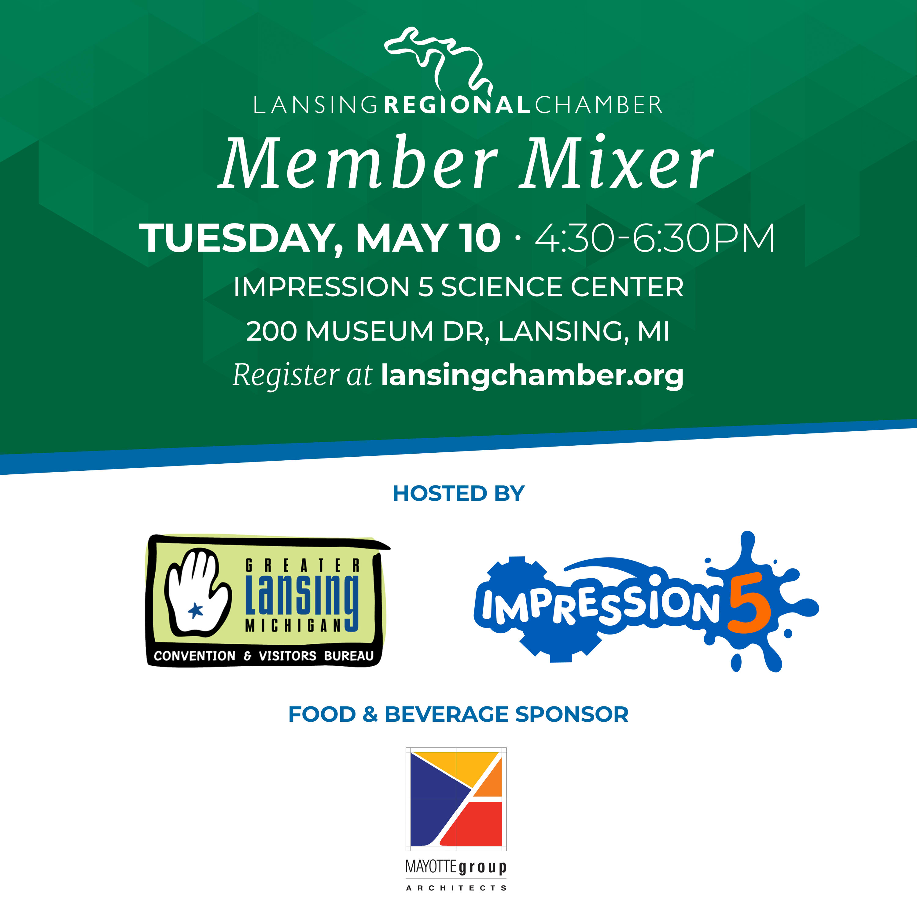 Co-hosted with the Greater Lansing Convention and Visitors Bureau, the May Member Mixer will celebrate tourism and the hospitality industry in our region. Join us at Impression Five to celebrate 50 years of this amazing tourism asset. Thank you to the MAYOTTEgroup Architects for their generous sponsorship.
