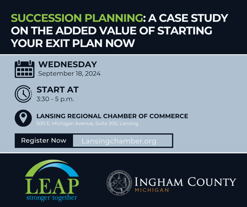 To help Ingham County businesses, LEAP and Ingham County are partnering with Foster Swift Collins & Smith, PC and Transworld Business Advisor to offer a unique seminar: